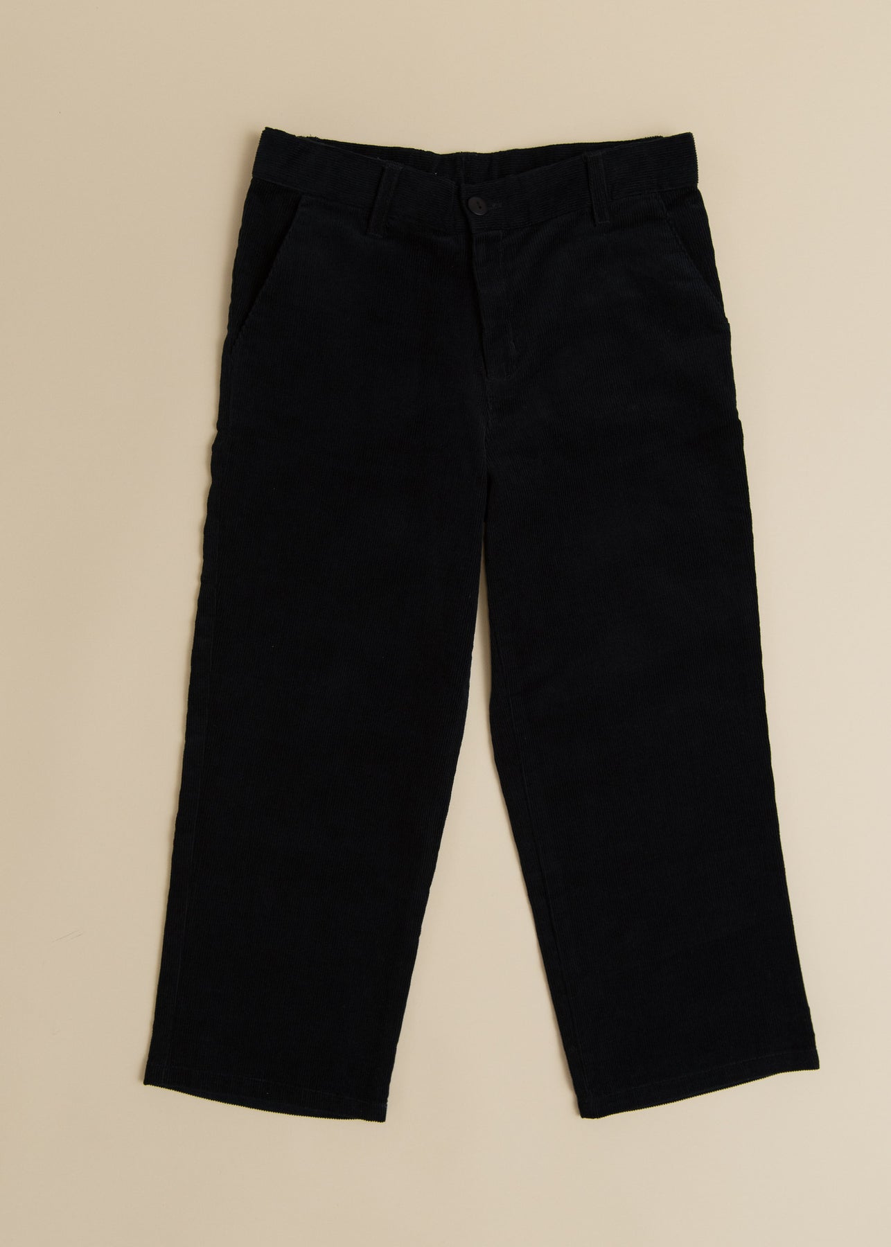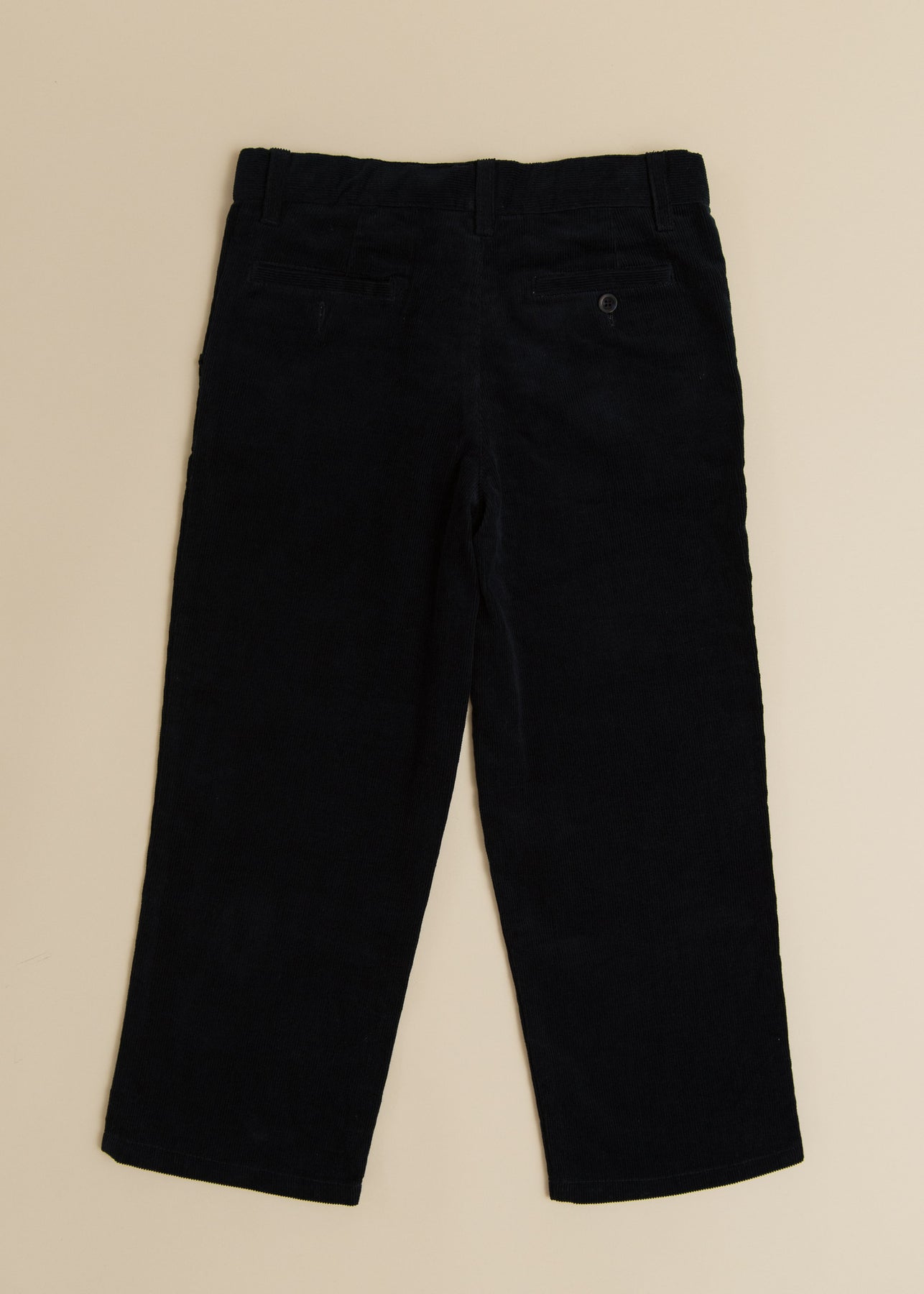 Very soft, fine wale corduroy with a zipper and button closure at the front with adjustable inner tabs.